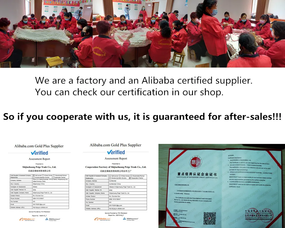 Shijiazhuang Peige is a professional engaged in home textile manufacturer and exporter enterprises. Now it has formed a diversified trade industry model with wool products, knitted/crochet products, baby products and home decoration products as the main products. We also accept customized orders. Have established long-term cooperation relations with some well-known brands at home and abroad.