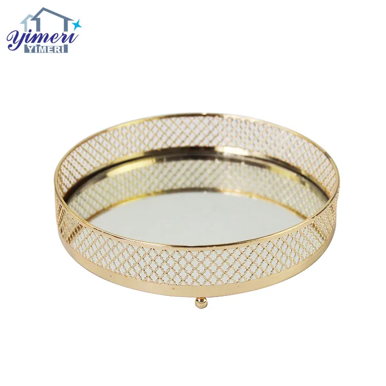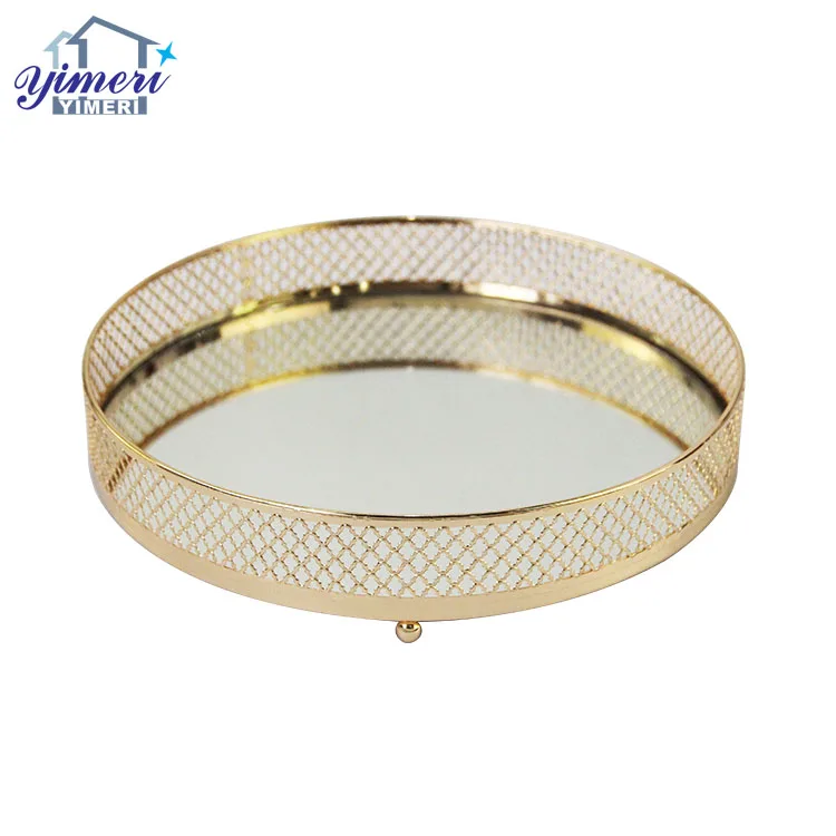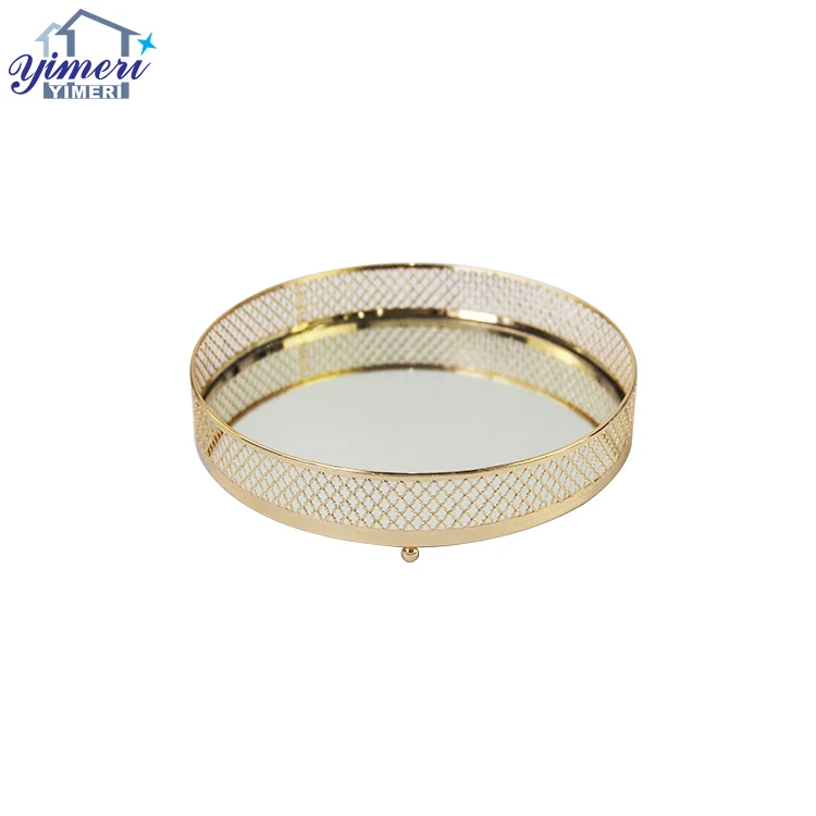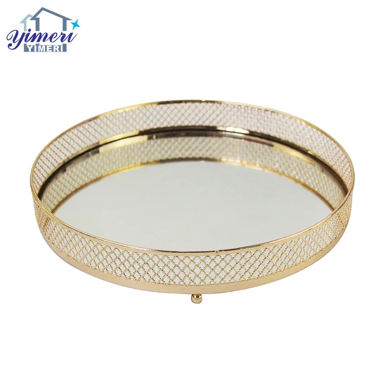 Product Name | Wedding Table Decor Big Gold Plated Round Service Trays With Mirror |