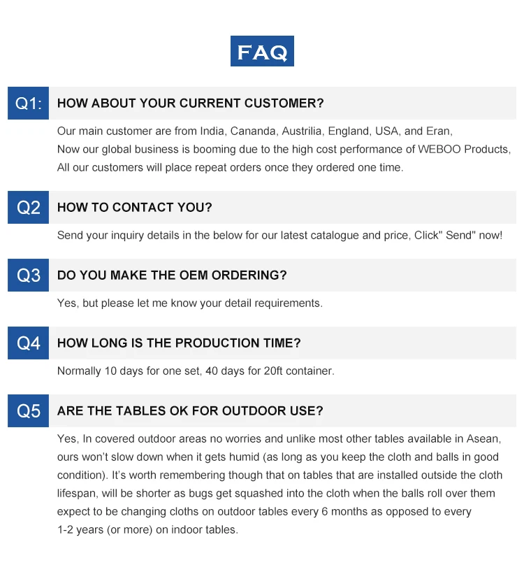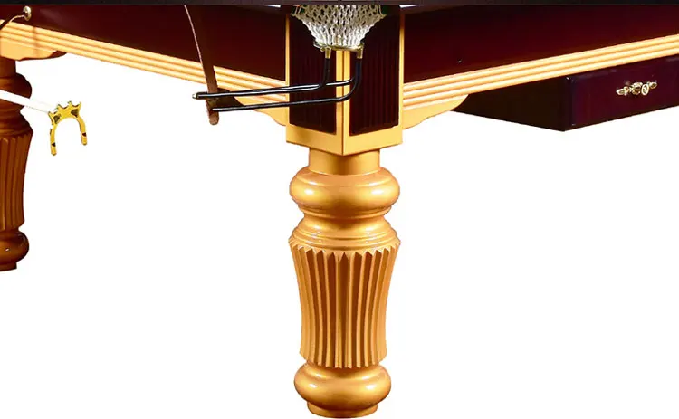 Standard accessories | Slate(one set),Fireproof board(for rails ),Cusion facings/Cusion rubber(L77),Table Cloth(double-faced pile one set),Cue(Three pcs),Balls(one set),Cue rack(one set),Brush(one pcs),Ball tray(one set),Triangle ball rack(one pcs),Glue(one pcs),short rest rod(two pcs),Long Cue/Long cue rack(one pcs for each ),Cue tips(25 pcs),Cue chalk(one box 12pcs),Gloves(four pcs),hook(8 pcs),Electronic scoreboard(one set),snooker cross fork(one pcs),High and low fork (one pcs for each one) |