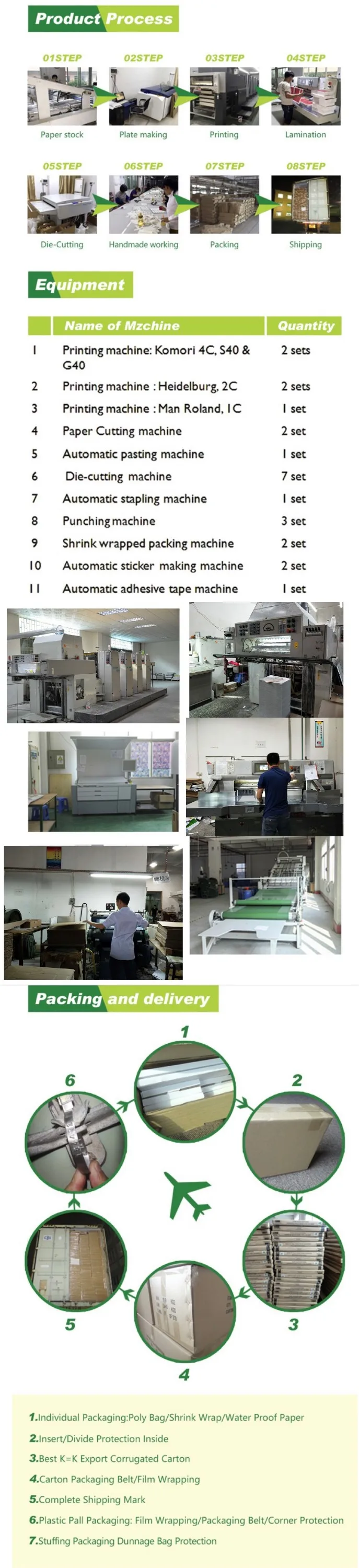 We are professional manufacturer in making all kinds of paper printing products, such as paper bags,gift boxes,corrugated box,food packaging box, puzzles, children books, notebooks, display box etc which is widely used. If you are interested in any product, please do not hesitate to contact us!