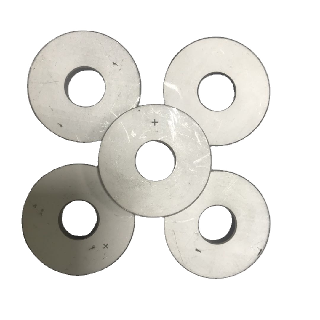 Φ50*Φ17*6.5 | 2425 | 0.3 | 34.6 | ≧0.45 | 800 | For High Power Transducer: 1) Ultrasonic Machining, 2) ultrasonic plastic welding, 3) ultrasonic drilling , 4) ultrasonic oil-water emulsions , 5) Spinneret powerful cleaning |