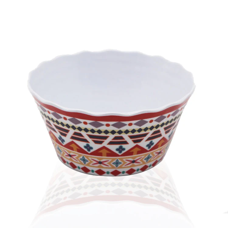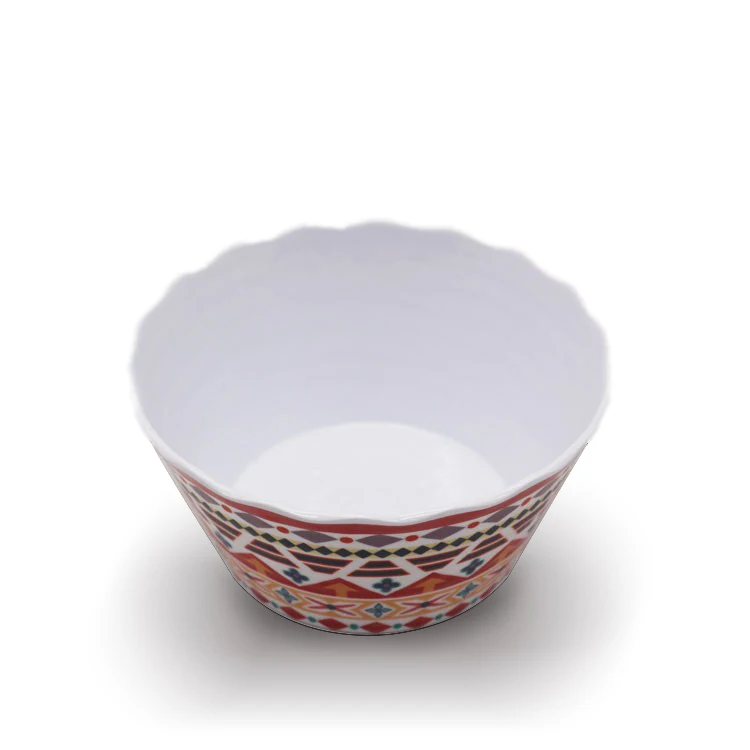 Product Name: | Wholesale Ethnic Style Melamine Geometric Pattern Lace Wavy Irregular Plastic Colored Dessert Salad Bowl |