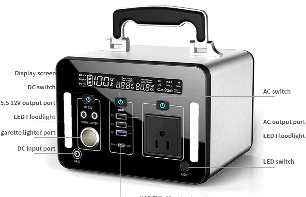 Out put2 | ●4*AC100V ●4*DC12V/5A ●1*cigar lighter 12V/10A ●1*Type-c 45W ●2*QC3.0 18W ●2*USB 12W4DC output |