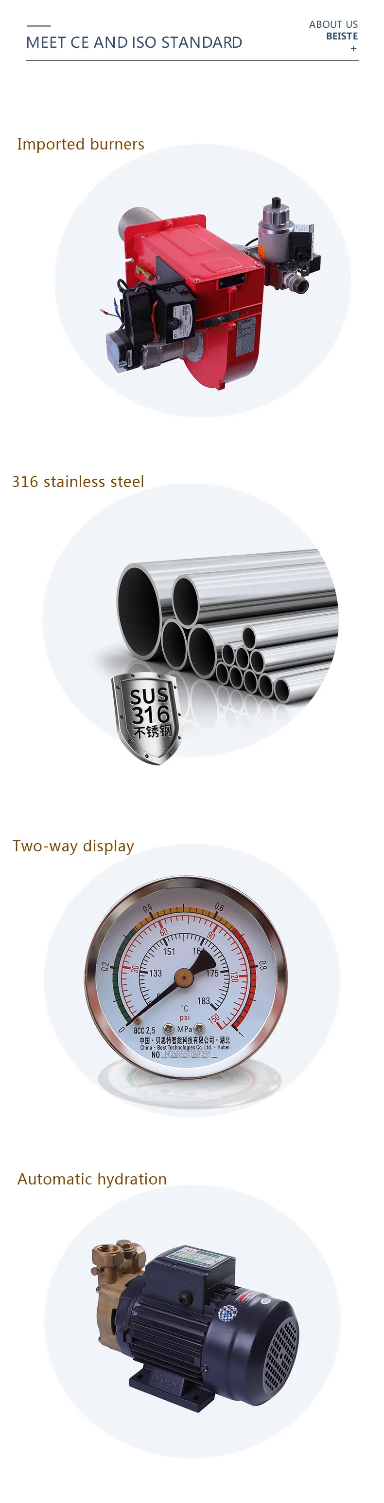 2. Do you have ISO9001 and CE certificates? Yes, we have. 3 Is your tank safe? We use Q245R carbon steel for steam generators, which is twice as thick as the industry, with stable