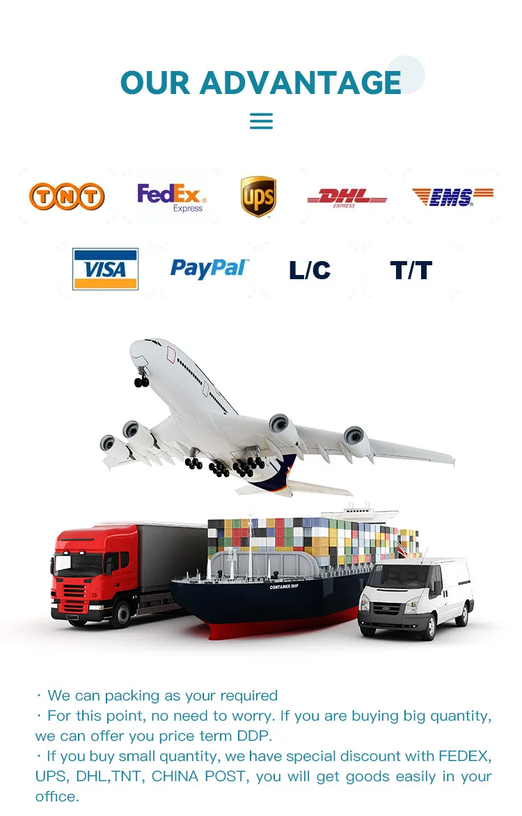 1. 1pc/opp , 50PCS /CTN , 1 big carton include 2 small cartons 2. CTN Size : 44* 32 * 28 cm 3. G/N.W: 17/18kg 4. We can packing as your required 5. For this point, no need to worry. If you are buying big quantity, we can offer you price term DDP. You will get goods at your warehouse without scratching the head. If you buy small quantity, we have special discount with FEDEX, UPS, DHL,TNT, CHINA POST, you will get goods easily in your office. |