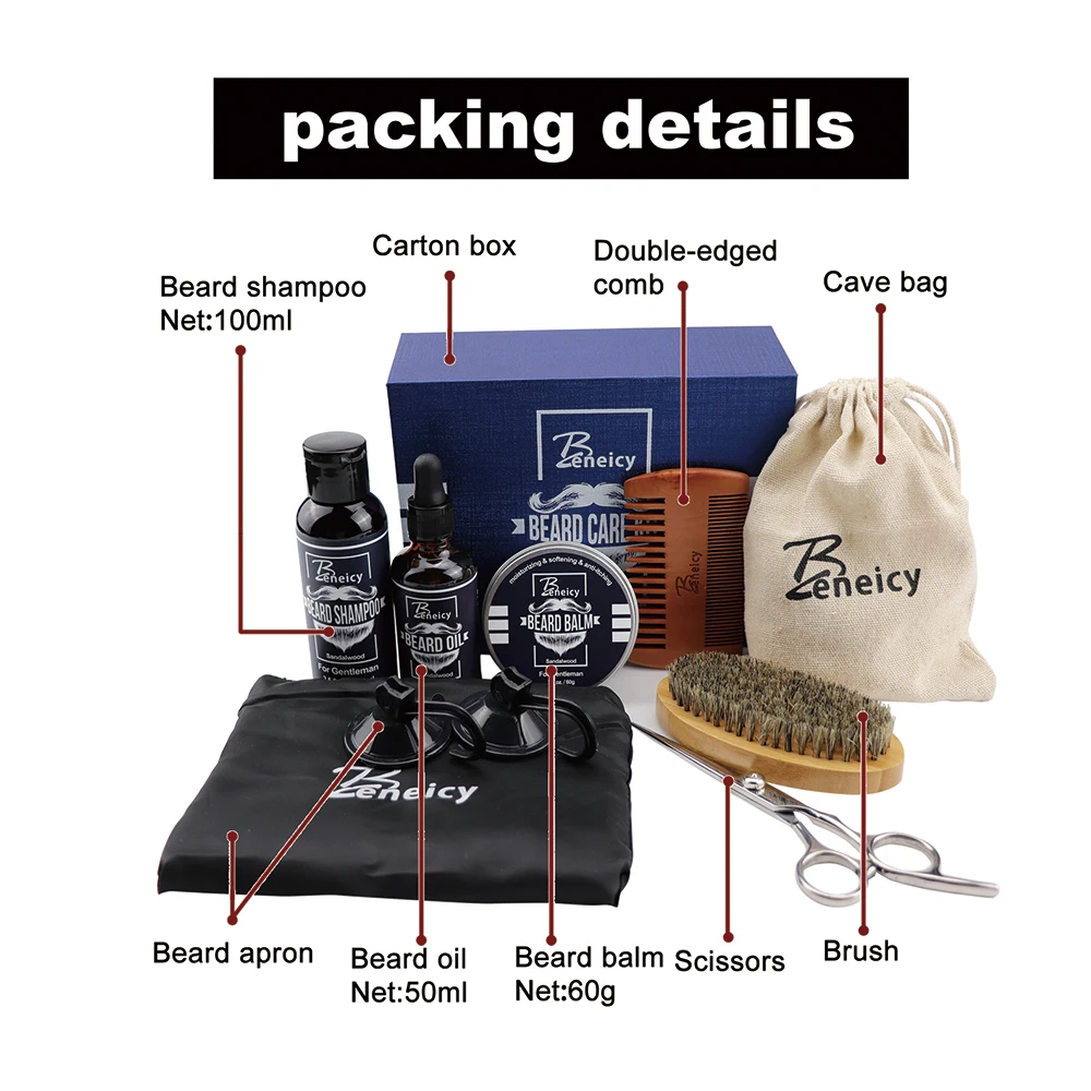 * GREAT VALUE: Included in the kit are shampoo,balm,oil,beard apron with suckers ,comb,boars hair brush and stainless steel