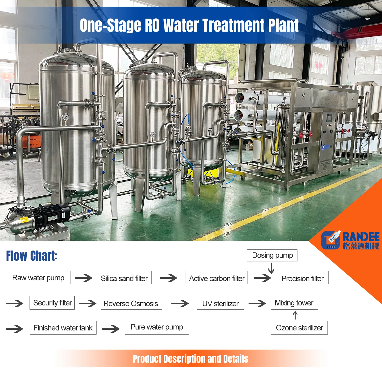 This RO system is very important in the whole water project, we prefer you supply water analysis report from your local inspection department. This RO system we can make to match up with your water filling machine from capacity from 500L/Hr to 50000L/hr.